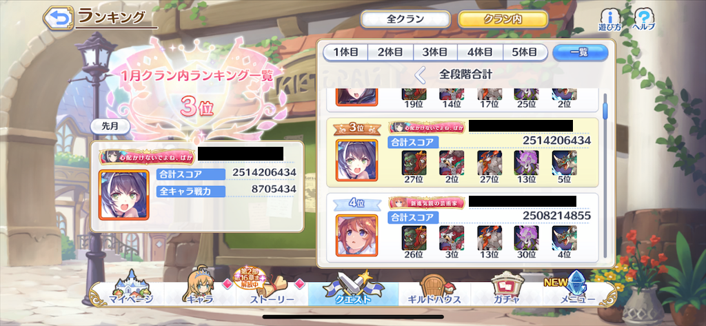 2023年1月クランバトルも遂に最終日の5日目に入りましたね。