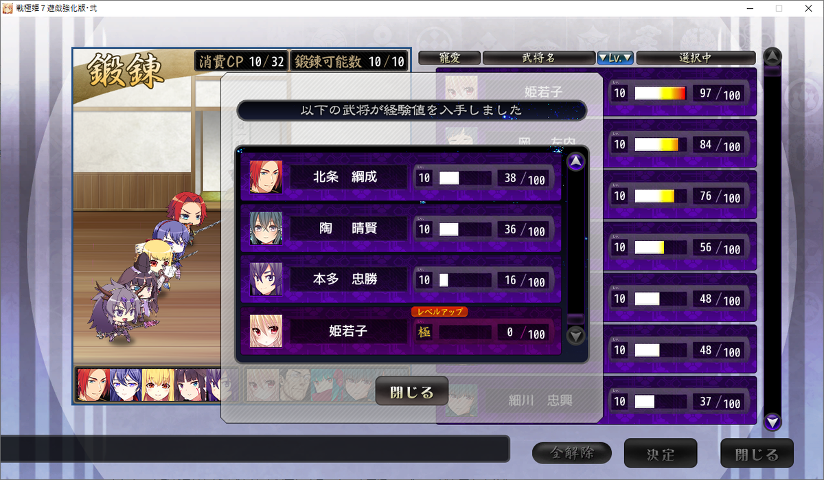 ほぼ全ての武将がレベル10になりました。